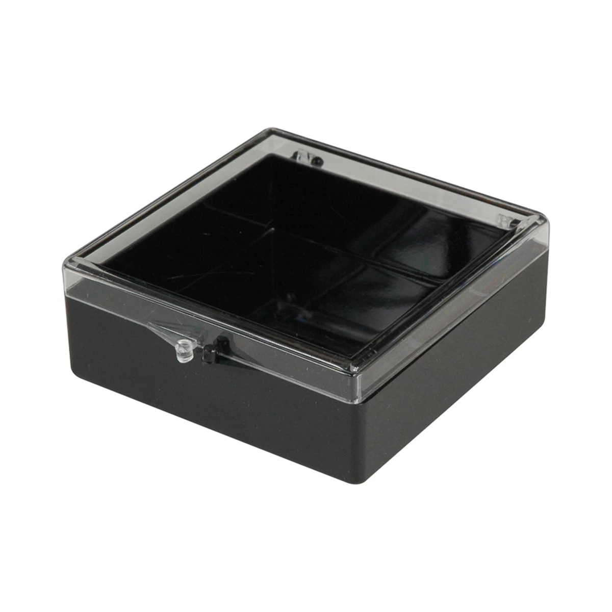 Boîte à charnière monobloc en plastique injecté (polypropylène ou polystyrène cristal)Boîte de rangement et de présentation à charnière intégrée